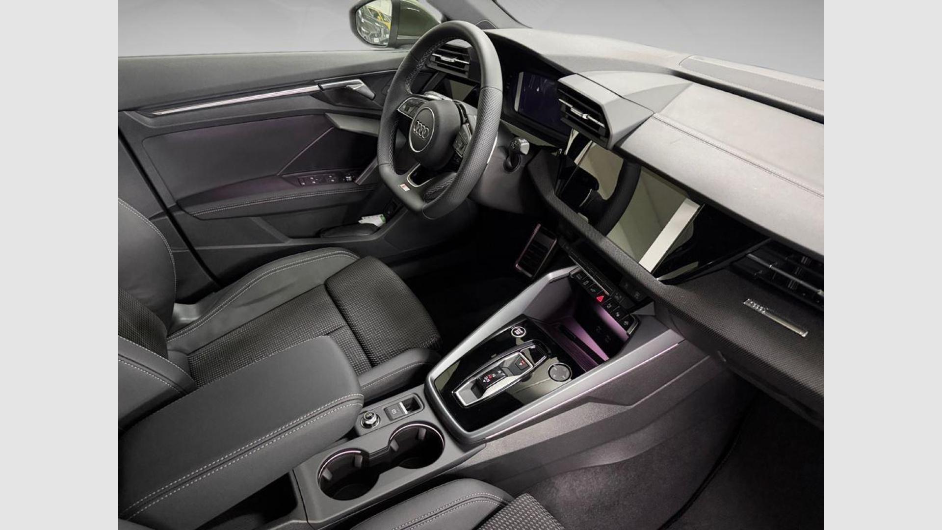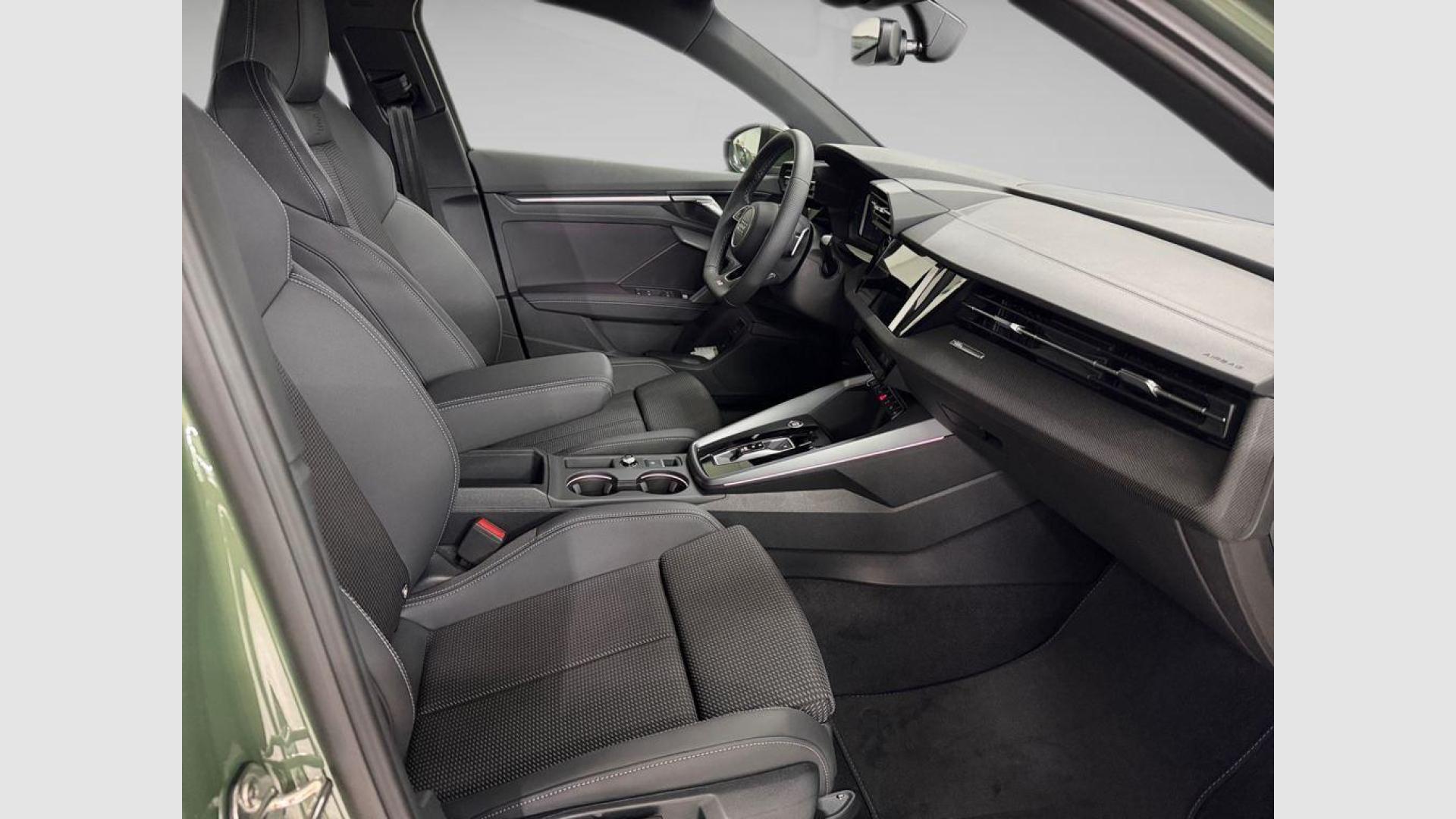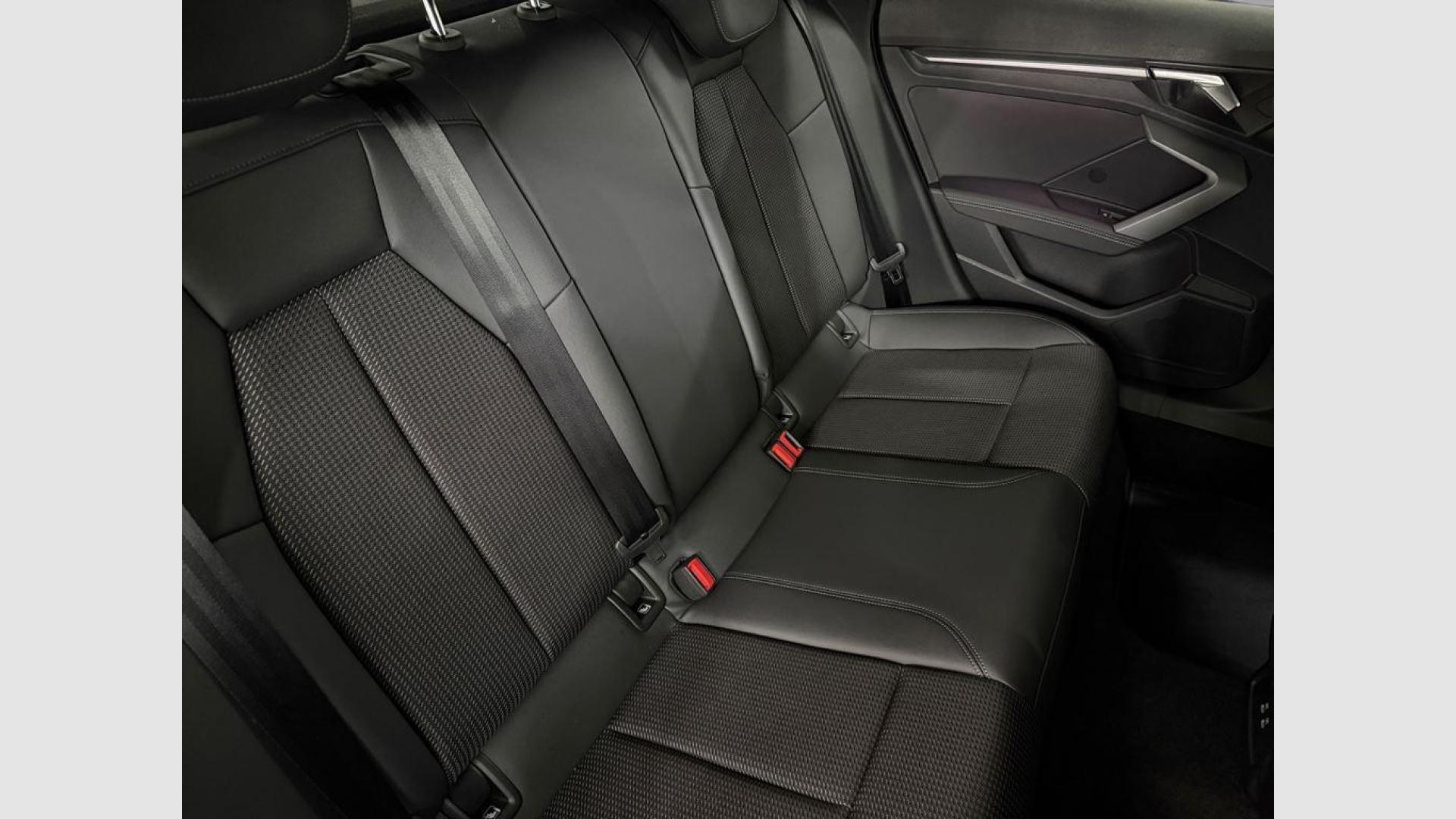 - Asientos de tela (material principal) y de cuero sintético (material secundario)