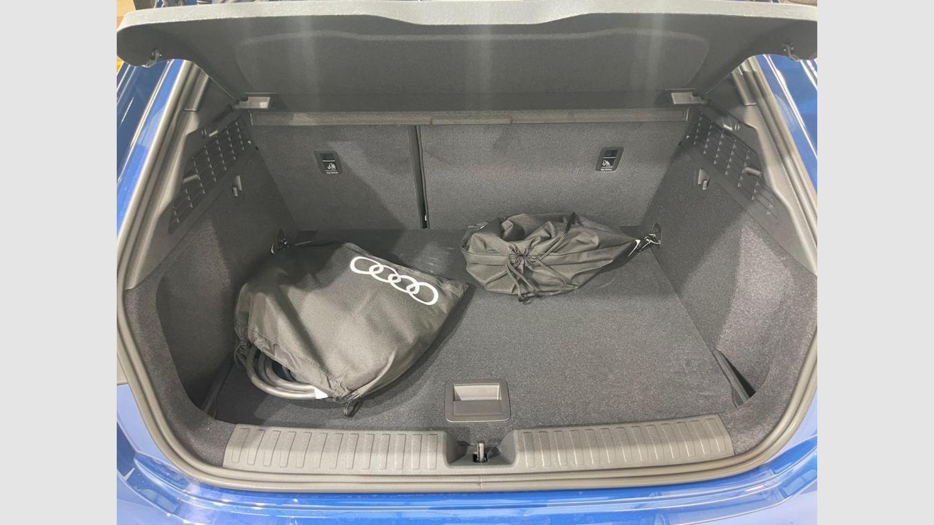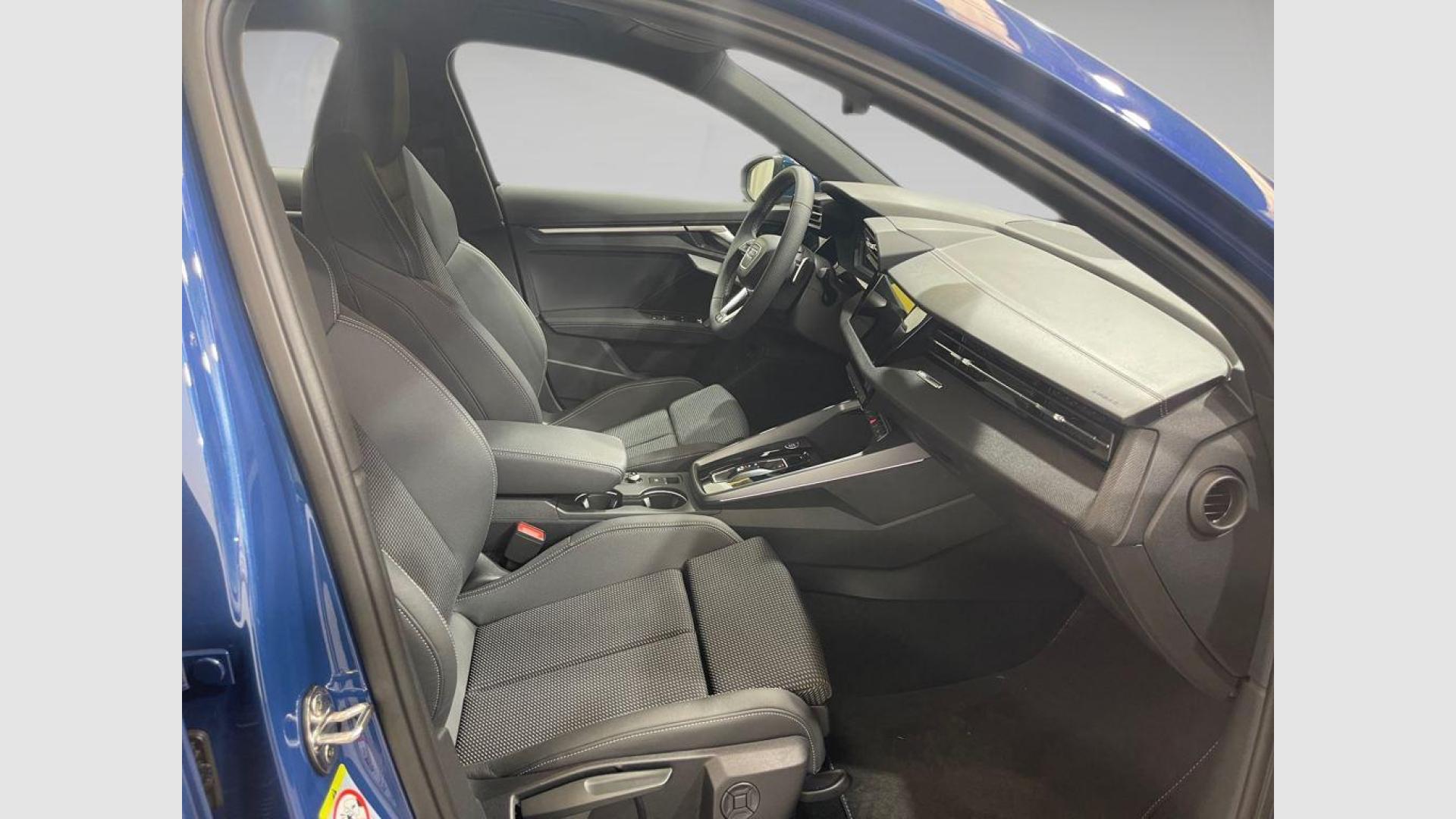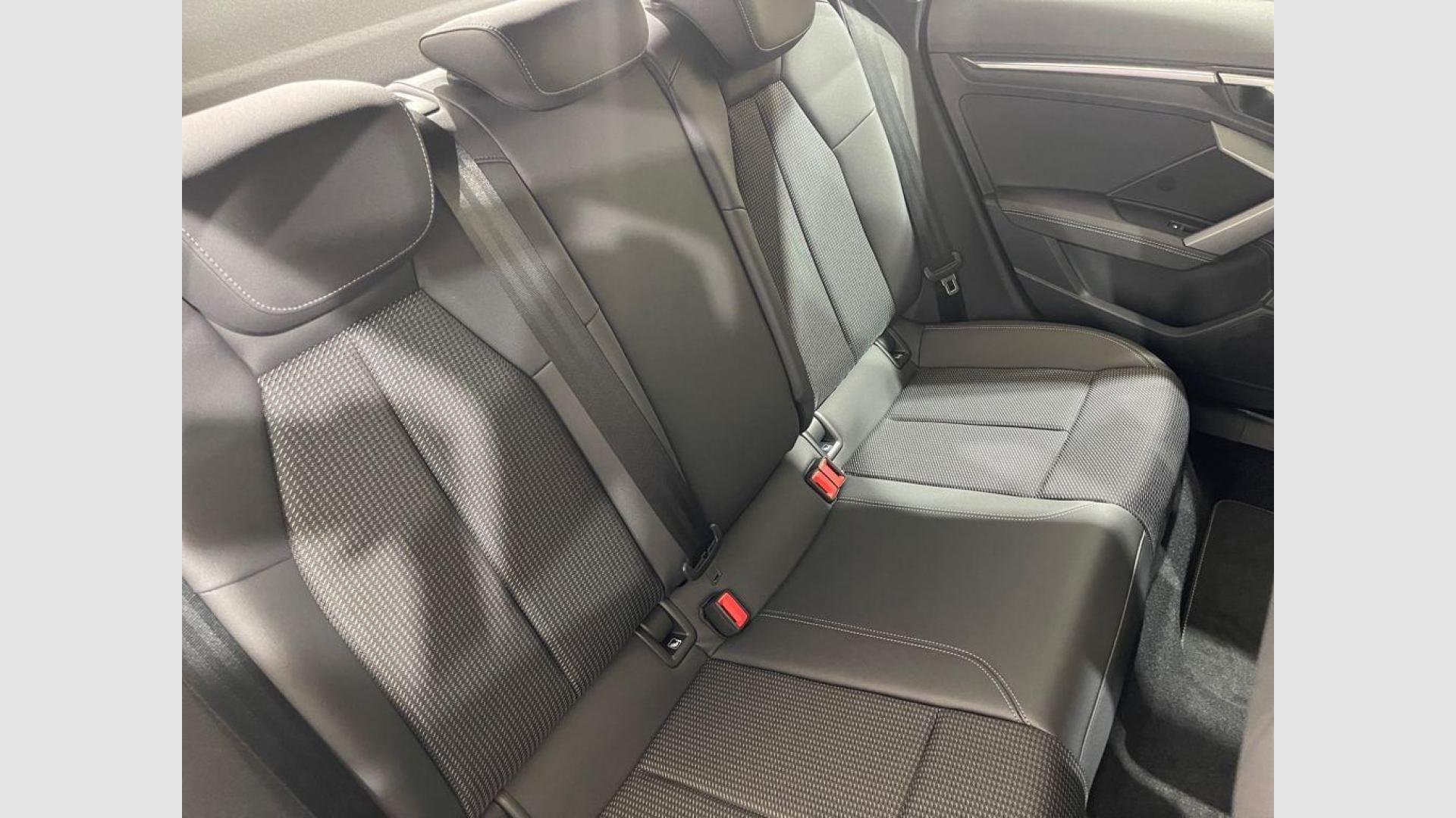 - Asientos de tela (material principal) y de cuero sintético (material secundario)