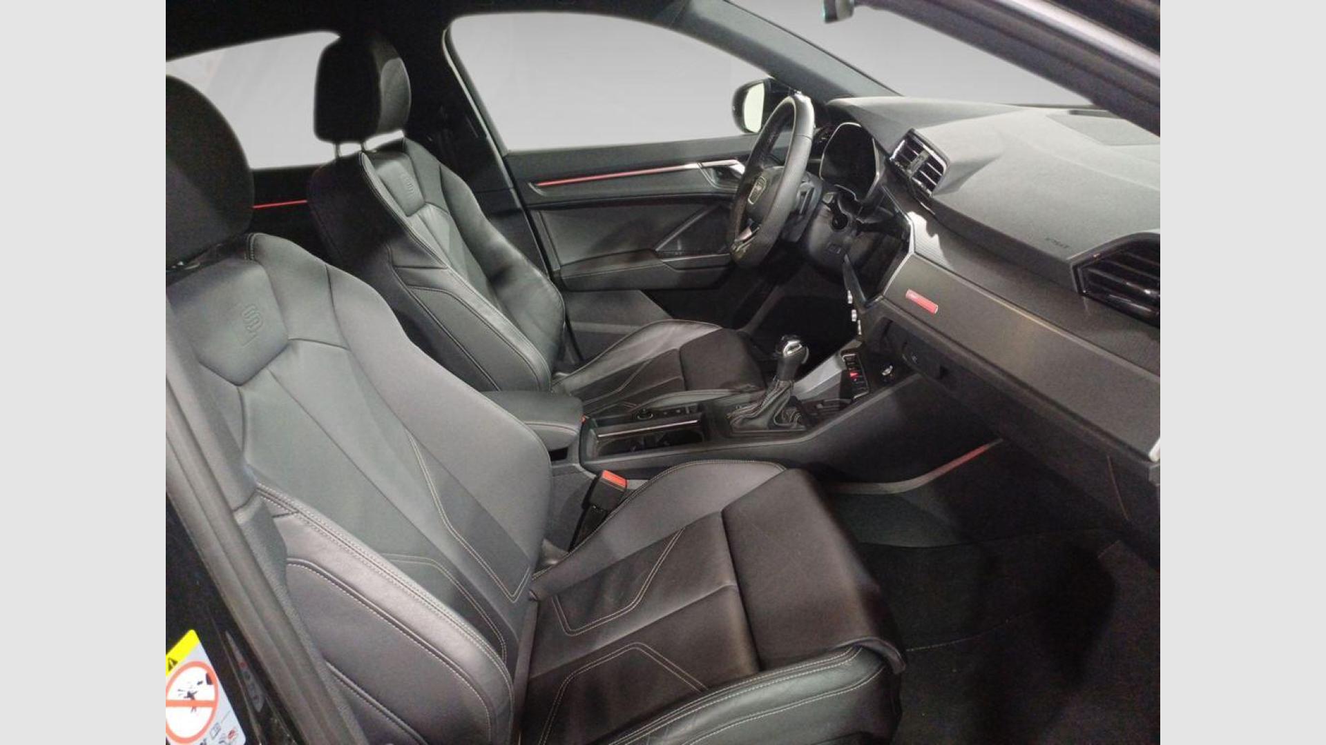 - Asientos de tela (material principal) y de cuero sintético (material secundario)